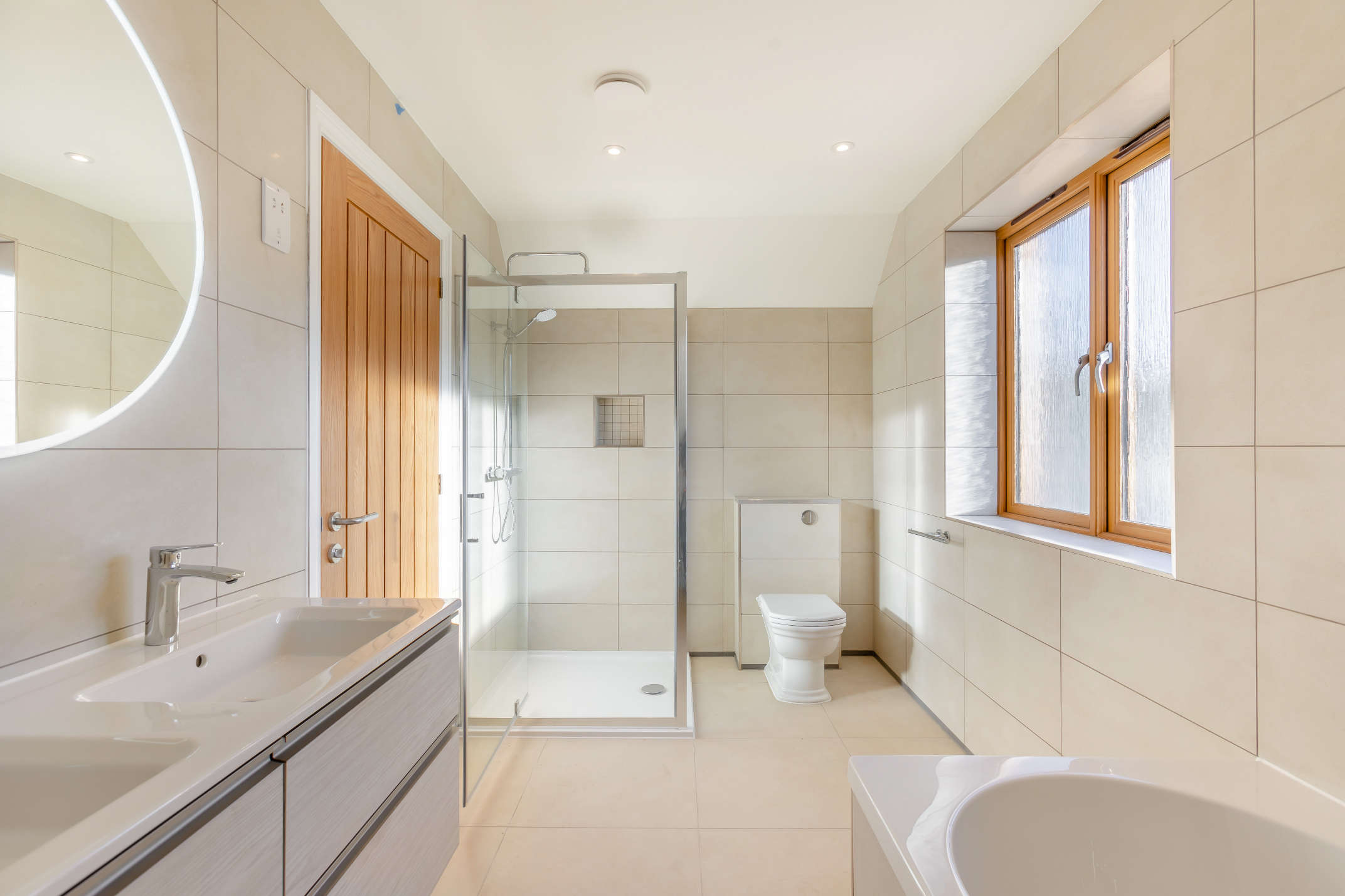 To the first floor there are four double bedrooms, the master bedroom complete with a large en suite bathroom room with both bath and separate corner shower unit. The remaining three bedrooms have the use of a beautifully appointed family bathroom, again complete with both bath and separate shower unit.