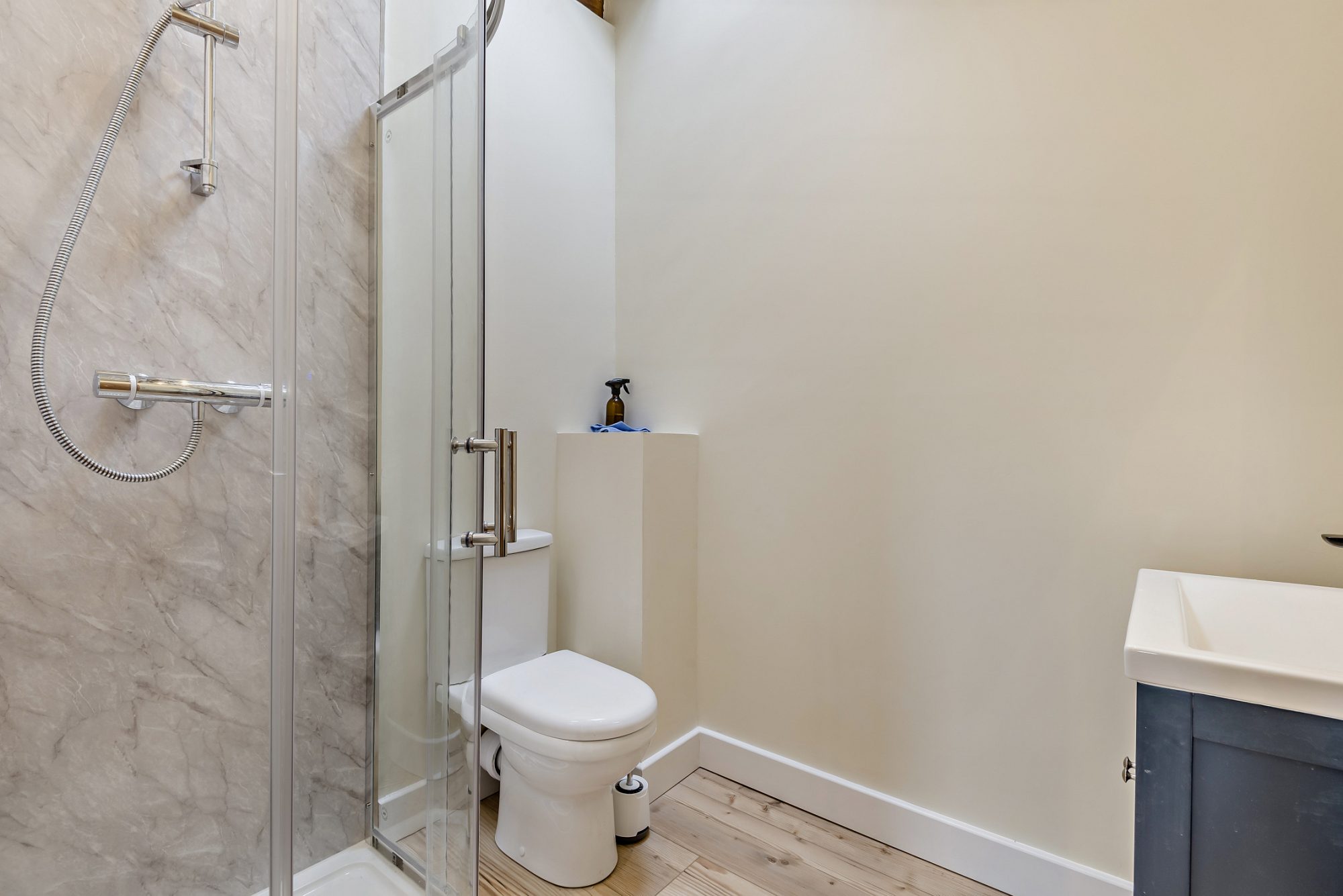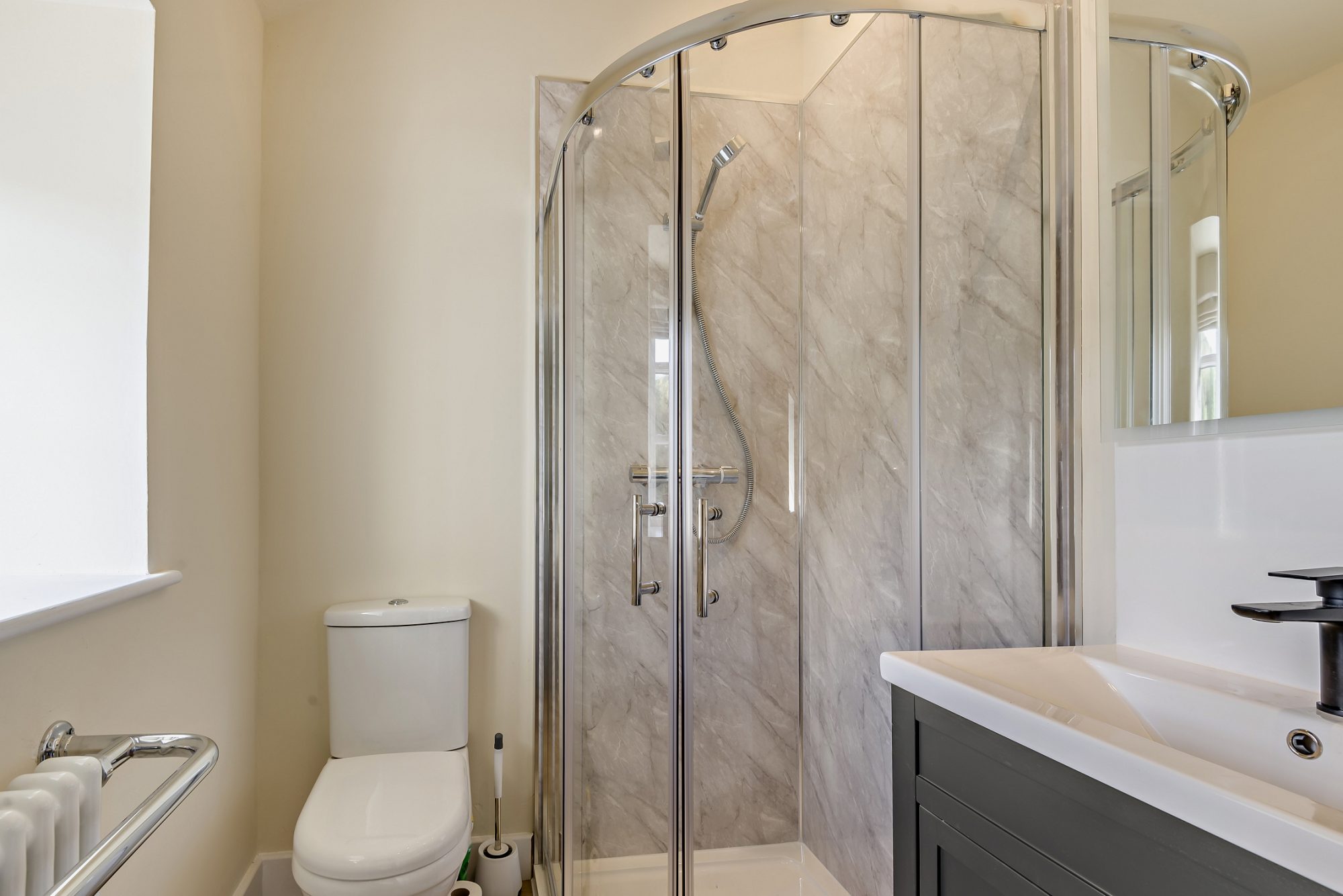 Leading from the kitchen into the turret is a charming dining or breakfast room. A versatile space which offers immense charm to the lovely country home. There is an additional room to the rear of the kitchen which again has been finished to a high standard with a range of floor and wall units, space for washing machine and dryer, quartz work-top, single sink and rear door. Finally, there is a separate plant room housing the heating system, the property is heated via a heat source air pump.