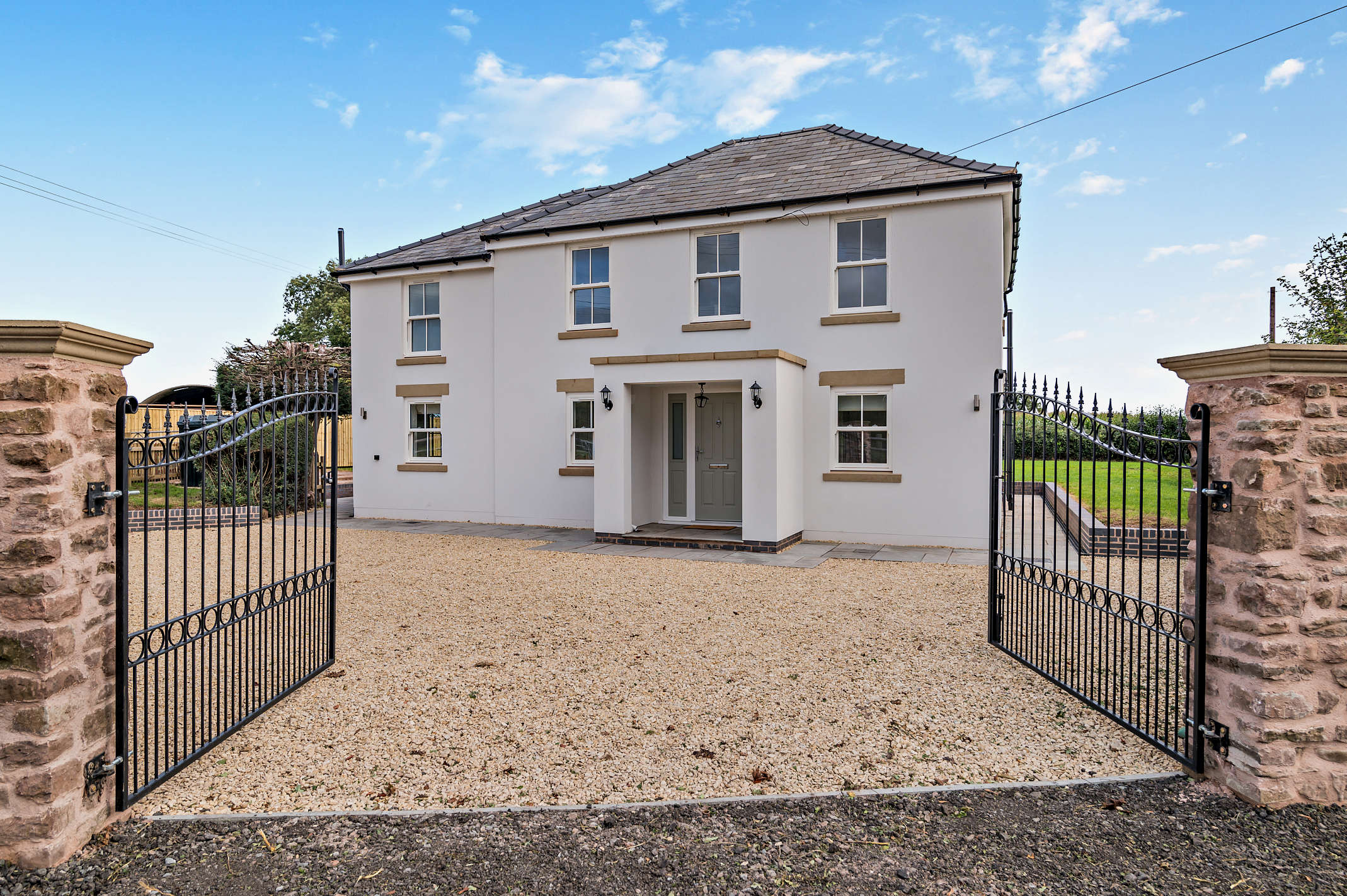To the front of the property there is a good-sized gravel area for numerous vehicles. To the side and rear of the property there is a large patio area which links onto a large lawned garden.