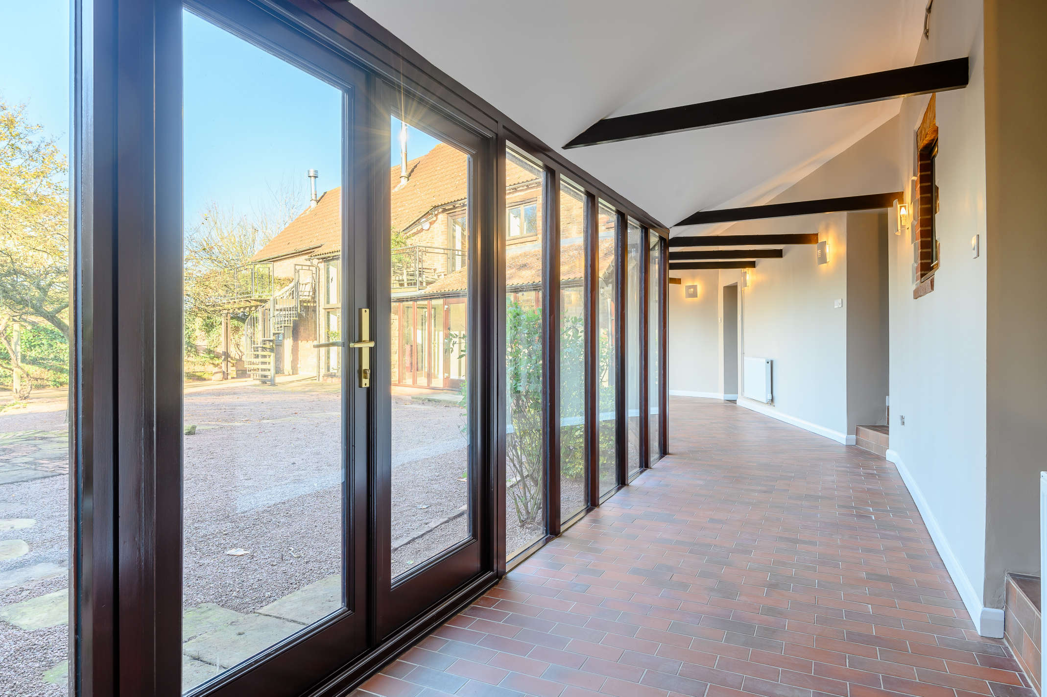 Leading from the kitchen through the inner landing there lies a second staircase which provides private access to the master bedroom and bathroom suite. Again, there are far reaching views both over the front gardens and rear courtyard with additional glazed doors leading to both sides of the master bedroom with direct access to small balconies.