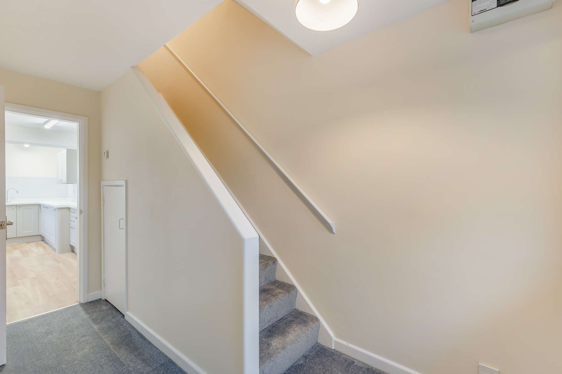 To the first floor there are three bedrooms, two doubles and a single. The family bathroom is complete with bath and electric shower.
