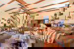 The courtyard of The Coach House benefits from a three-parking bay carport which used to be the stables of the property. Adjoining the carport is the music room/home office which could also be a playroom with laminated wooden flooring, French doors, wood-burning stove and separate cloakroom. There is also a storage/ work room.