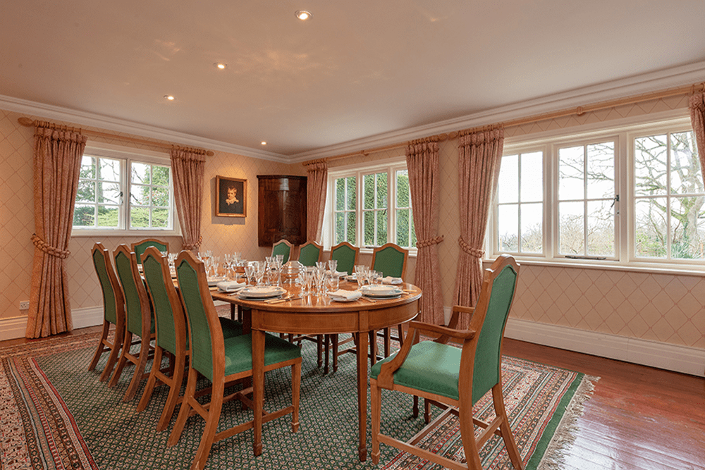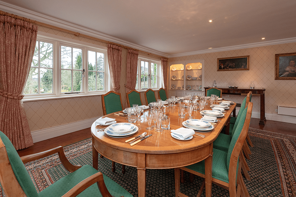 The three reception rooms radiate off the central hallway and include the good-sized dining room with double aspect windows and the sitting room which features a fireplace and a deep south-facing bay with window seat. The large, square drawing room has a corniced ceiling, splendid open fireplace and this elegant reception room has four large windows on the south and west elevations.