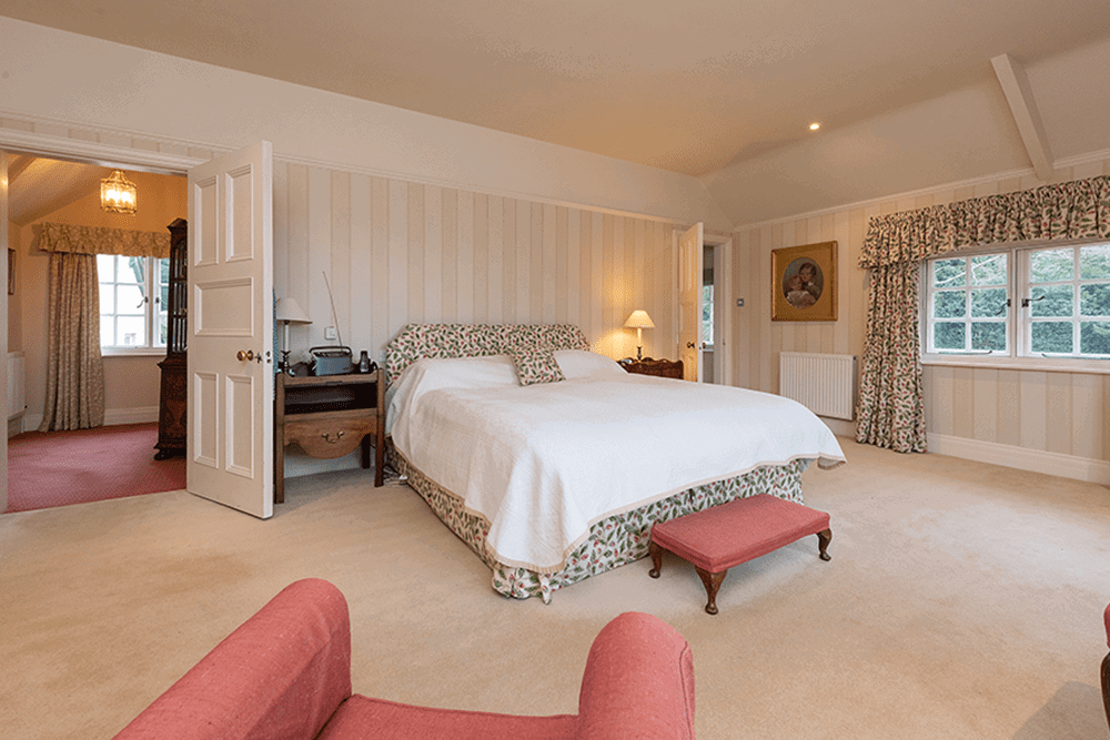 The first floor of the house is served by two staircases with the principal stairs rising to a light galleried landing which can serve as an additional sitting area. The east wing of the house contains the master suite with the guest suite in the west wing, both having windows on two aspects and some wonderful views over the grounds and for miles beyond. The remainder of the first floor comprises three further double bedrooms, one single bedroom and two additional bathrooms whilst the second floor houses an attic bedroom.